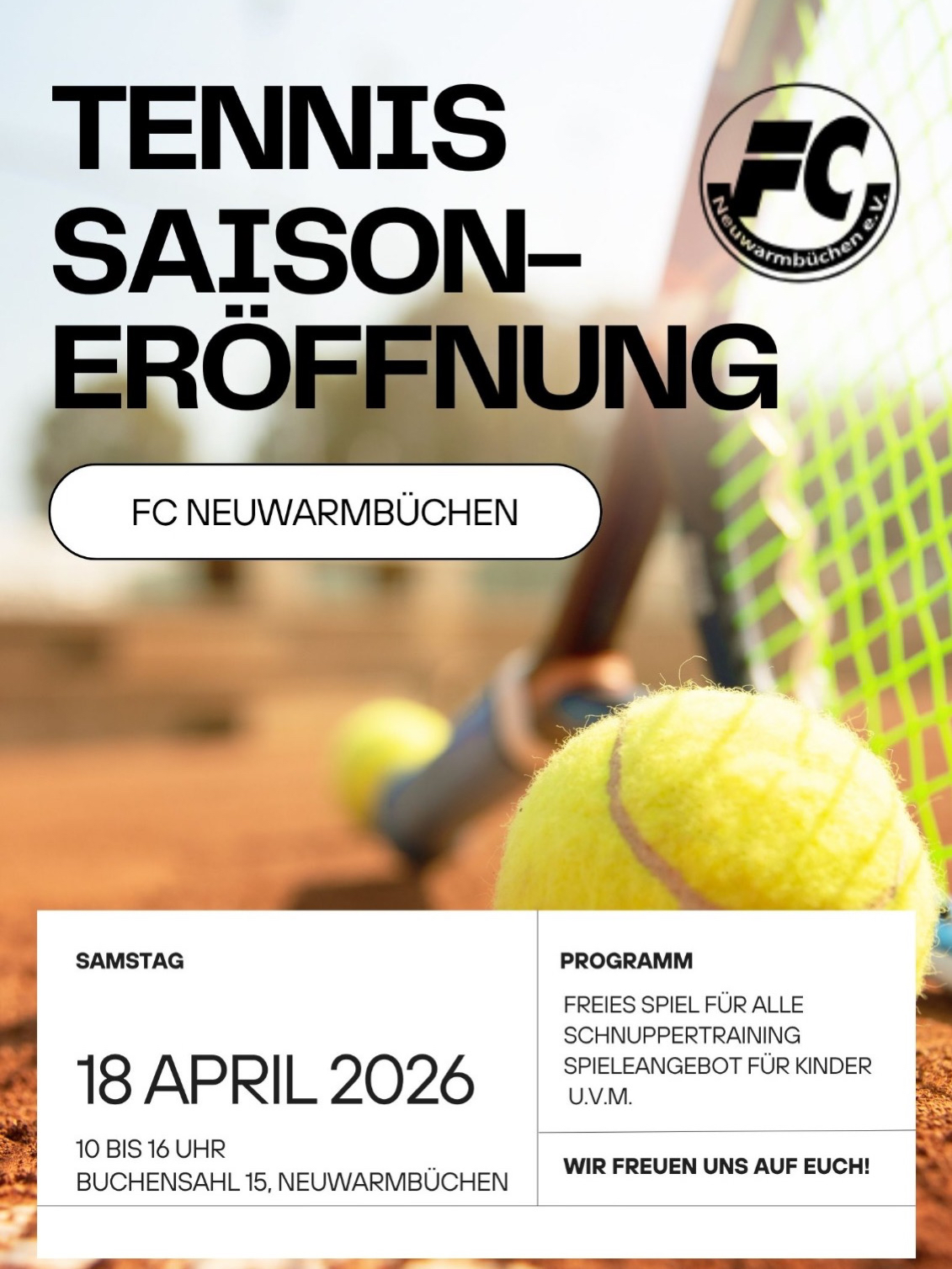 Wir freuen uns auf einen tollen Tag voller Tennis, Spiel und Spaß! Kommt vorbei, bringt eure Familie und Freunde mit und feiert mit uns die Eröffnung der Tennissaison 2026. Lasst uns gemeinsam einen unvergesslichen Tag erleben!